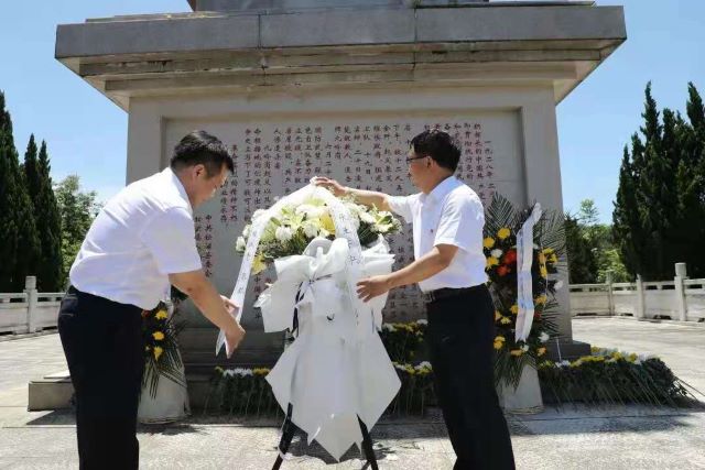 會后,全體黨員來到九嶺崗起義烈士陵園,向革命先烈敬獻(xiàn)花籃,在莊嚴(yán)的紀(jì)念碑前重溫入黨誓詞。