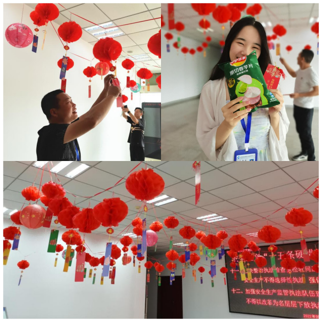 9月9日中午11點30分,猜燈謎活動正式開始,員工們熱情高漲,積極開動腦筋,你一言我一語地討論和分析謎面……“這個我猜是青字!”“什么動物長得像逗號?我知道!蝌蚪!”“‘羊叫’打一個詞牌名,這是什么?”大家時而露出胸有成竹的笑容,時而冥思苦想,時而恍然大悟,時不時還有熱烈的討論聲夾雜其中。兌獎處,工作人員給每位猜對燈謎的員工都送上了一份小禮品,并附贈誠摯的節(jié)日問候和祝福。所有人的臉上都洋溢著幸福的笑容。大家在祥和愉快的節(jié)日氣氛中感受公司的關(guān)懷,體會大家庭般的和睦溫暖。