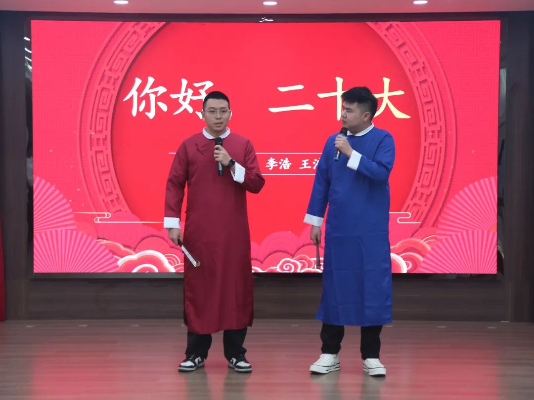 隨后,一場洋溢著青春朝氣與活力的文藝盛宴在詩歌朗誦《青春中國》中掀起篇章。合唱《我驕傲我是中國人》《最美的太陽》,獨(dú)唱《交換余生》,對唱《真心英雄》,相聲《你好,二十大》《卷王之王》,情景短劇《覺醒-中國》《滿江紅》,舞蹈《國家》等節(jié)目接連登場,奏響了新時代青年的青春樂章。