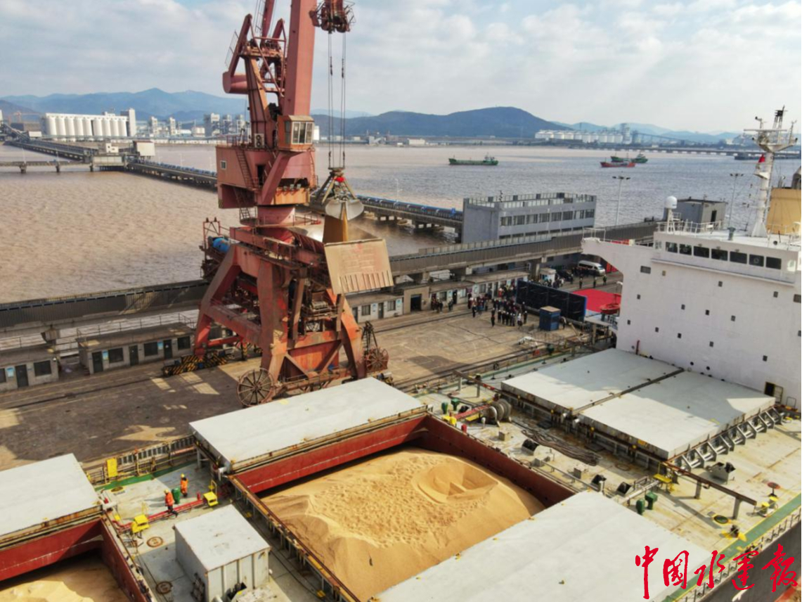 “十四五”期間,舟山市精準(zhǔn)構(gòu)建“樞紐+通道+網(wǎng)絡(luò)”現(xiàn)代糧食物流體系,累計(jì)1.58億噸糧食經(jīng)寧波舟山港轉(zhuǎn)運(yùn)至長(zhǎng)江沿線。經(jīng)測(cè)算,經(jīng)舟山中轉(zhuǎn)的糧食已占據(jù)長(zhǎng)江沿線全部進(jìn)境糧食總量65%,占全國(guó)進(jìn)境糧食21%。這條高效的“藍(lán)色糧道”,逐步成為長(zhǎng)江經(jīng)濟(jì)帶糧食安全與供應(yīng)鏈暢通的重要支撐。