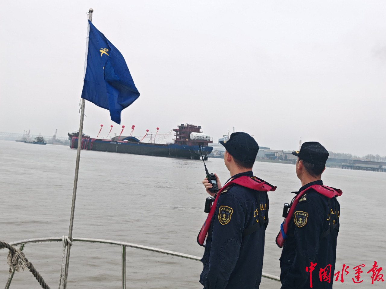 長江海事護(hù)航萬噸級LNG動力船“華渝集06”輪吉水。